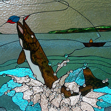 Bleiverglasung eines modernen Hausfensters nach Kundenwunsch und dazu angefertigtem Entwurf. Ein Unikat.